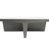 Sleek and sculptural, this modern cocktail table captivates with its refined silhouette and subtly contoured details. The base and underside of the tabletop reveal unexpected curves and softened lines, adding depth and dimension to its minimalist form. A quiet study in shape and proportion, it draws the eye without demanding attention.