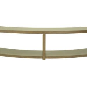 A striking expression in wood, this curved console table showcases two sweeping surfaces supported by carefully positioned vertical elements, resulting in a design that is both stable and full of movement.